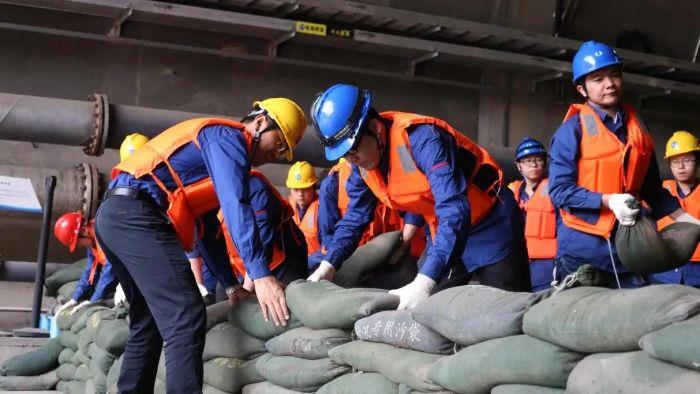 ▲ 長(zhǎng)江電力溪洛渡電廠(chǎng)青年突擊隊(duì)員緊張有序地開(kāi)展防汛演練