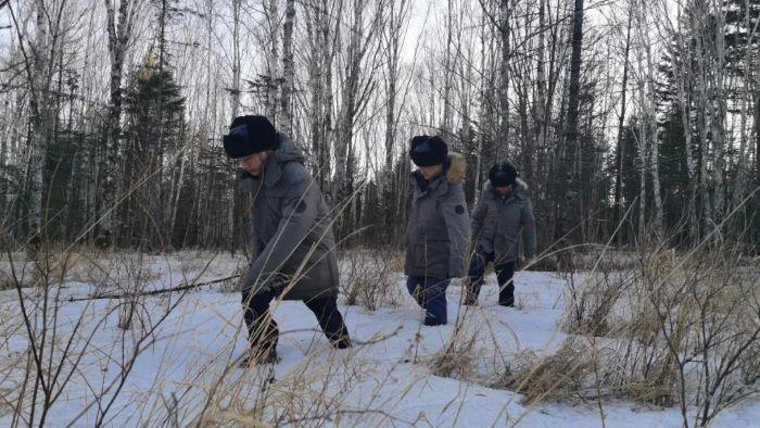▲ 三峽能源黑龍江分公司青年運(yùn)維團(tuán)隊(duì)成員踏雪做好線(xiàn)路巡視