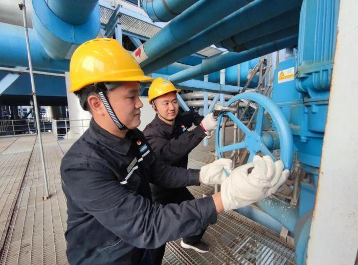 ▲ 鄂州發(fā)電公司青年先鋒工作團(tuán)隊(duì)隊(duì)員現(xiàn)場(chǎng)調(diào)試閥門(mén)