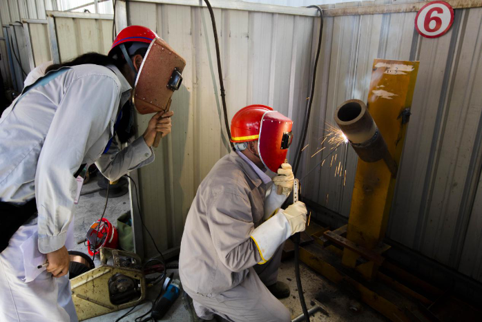 7月18日,在簡短的啟動儀式后,活動正式進(jìn)入實(shí)際操作的比拼。率先登場的是電焊工,記者在位于白鶴灘壓力鋼管廠的比武現(xiàn)場看到,參賽選手們頭戴防護(hù)罩,手持電焊