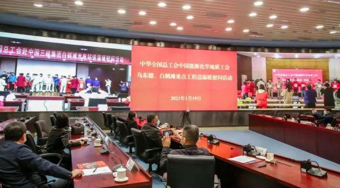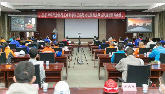 三峽集團工會、中國電建集團工會、中國能建集團工會、烏東德、白鶴灘工程各參建單位相關(guān)負(fù)責(zé)人及勞動模范、優(yōu)秀建設(shè)者、困難職工代表共計100余人參加送溫暖活動。