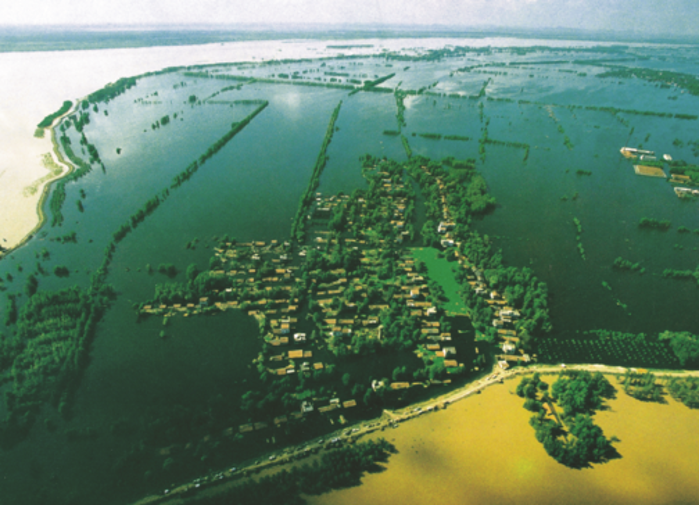 1998年長江發(fā)生洪災(zāi)時被水淹沒的嘉魚縣鄉(xiāng)村簰洲灣