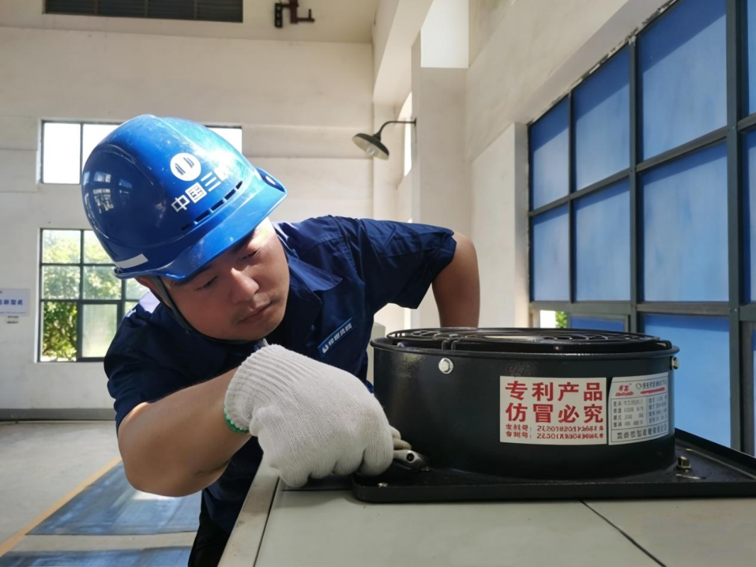 圖為檢修員對變頻控制柜加裝軸流風機優(yōu)化散熱性能