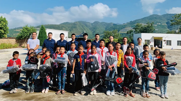 金陽索瑪花開,巨大的風(fēng)電機組屹立于山頭,將原本貧瘠的荒山變成了助力鄉(xiāng)村振興的“金山銀山”?!按箫L(fēng)車”每年可“吹出”約4。19億千瓦時的清潔能源,每年可為當(dāng)?shù)卣黾?000多萬元的稅收,建設(shè)期創(chuàng)造出500多個就業(yè)崗位。六一兒童節(jié)期間,金陽風(fēng)電場的現(xiàn)場運維團(tuán)隊為偏遠(yuǎn)學(xué)校的學(xué)生們發(fā)放教學(xué)物資和生活用品,青年志愿者們向小朋友們介紹風(fēng)電機組模型,小朋友們被“大風(fēng)車”吹出的清潔能源深深吸引,“小腦袋們”圍著志愿者老師嘰嘰喳喳好奇地詢問風(fēng)力發(fā)電的種種細(xì)節(jié)。